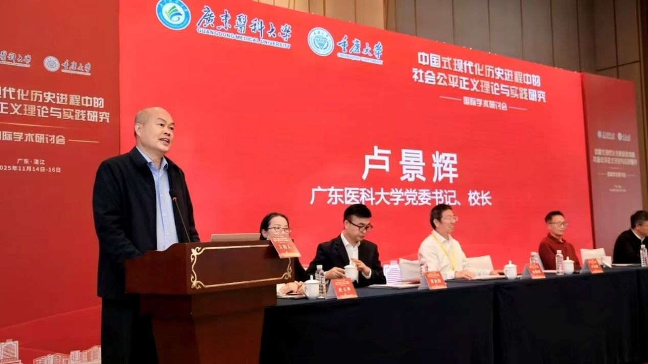 11月15日,由广东医科大学、重庆大学和中国辩证唯物主义研究会公平正义研究专业委员会联合主办,广东医科大学马克思主义学院、重庆大学马克思主义学院承办的“中国式现代化历史进程中的社会公平正义理论与实践研究”国际学术研讨会在湛江顺利召开。来自中国社会科学院、湖南大学、重庆大学、美国中美后现代发展研究院、中山大学、复旦大学、中国人民大学、武汉大学、上海交通大学、兰州大学等全国100余所高校、科研机构等单位的170多位专家学者、师生代表齐聚一堂,围绕中国式现代化进程中的社会公平正义问题展开深入研讨。会议开幕式由广东医科大学党委副书记黄达海主持,广东医科大学党委书记、校长卢景辉,中国辩证唯物主义研究会公平正义研究专业委员会会长、重庆大学马克思主义学院院长冯颜利分别致辞。